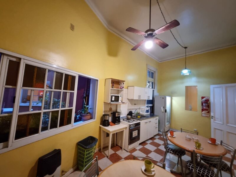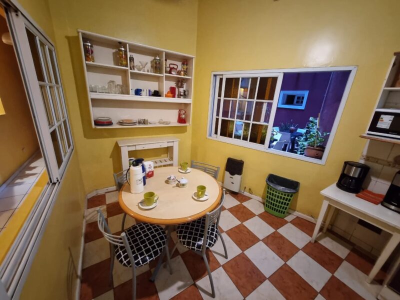 Contamos con habitaciones privadas y compartidas, cocina totalmente equipada para que puedas preparar tus comidas, patio descubierto, living con Smart tv y cómodos sillones, y escritorios de lectura/trabajo.