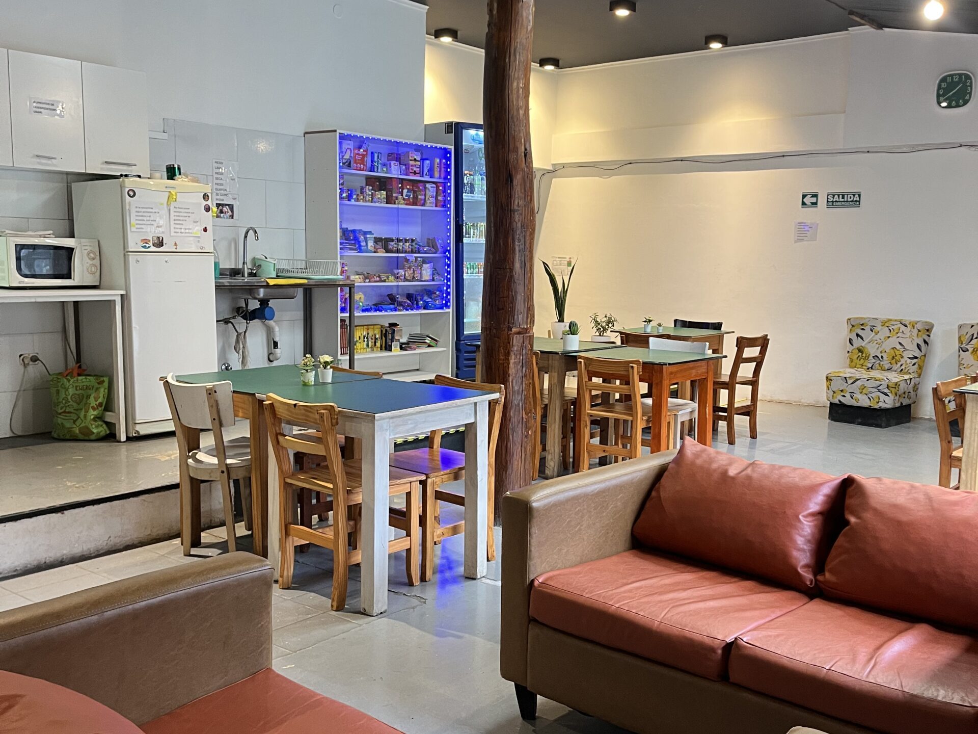Contamos con cómodas habitaciones tanto compartidas con baños compartidos como privadas con baños privados, cocina totalmente equipada, sala de estar con TV, WiFi en todo el establecimiento, recepción 24 horas, atención personalizada a grupos, kiosco y un encantador patio interno para compartir momentos con otros viajeros.